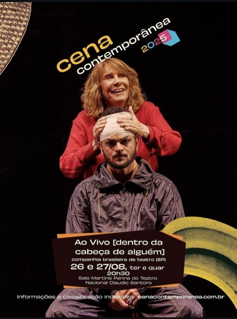 AO VIVO [dentro da cabeça de alguém] Brasília DF – 26 e 27 de agosto de 2025 Cena Contemporânea Teatro Nacional Cláudio Santoro – Sala Martins Pena
