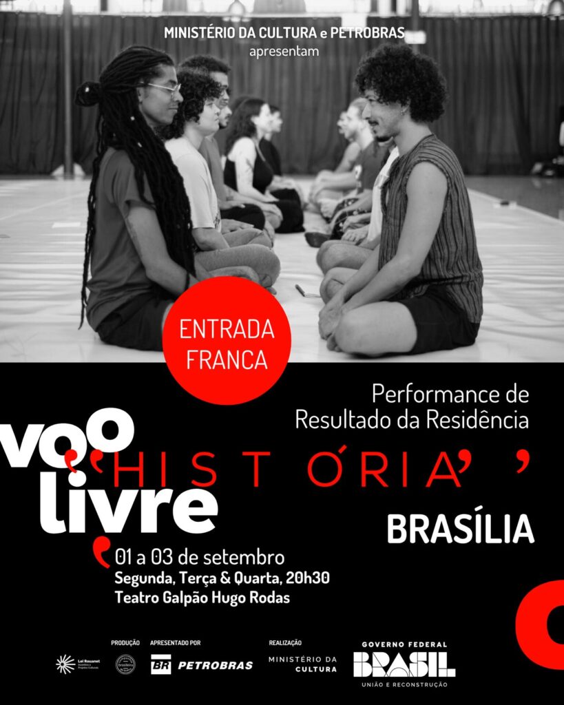 Residência Petrobrás “Voo Livre: História” apresentações no festival @cenacontemporanea_brasilia. Dias 01 a 03/09/2025, às 20h30, Teatro Galpão Hugo Rodas, Espaço Cultural Renato Russo, Brasília DF